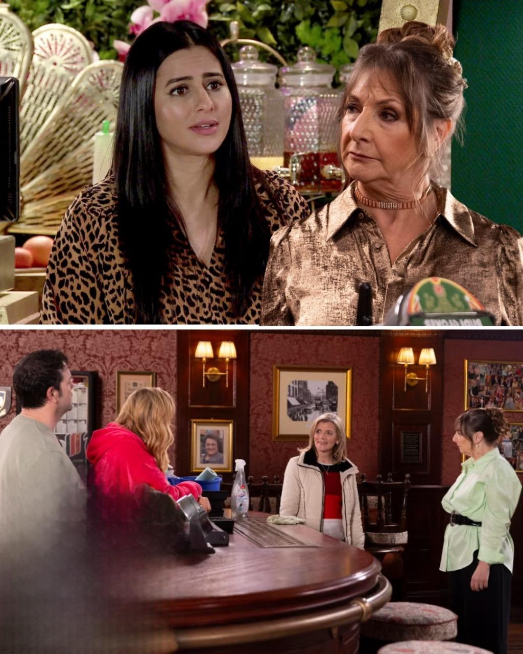 When Alya Nazir pops into the pub, Maggie “conveniently” mentions Leanne’s big offer. Maggie’s smug when it becomes clear that Alya knows nothing about it.